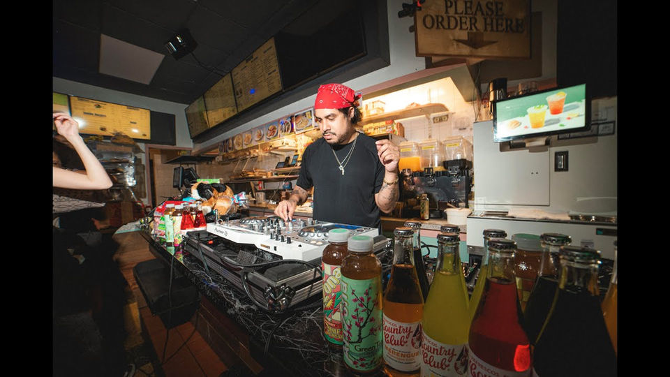 The raw energy of the Bronx in a bodega turned rave space, featuring vibrant crowds and eclectic beats.